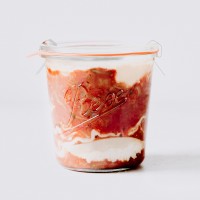 Tipp: Mikrowelle: Glas mit Deckel, ohne Gummi und ohne Klammern 5 min bei 700 Watt erhitzen.